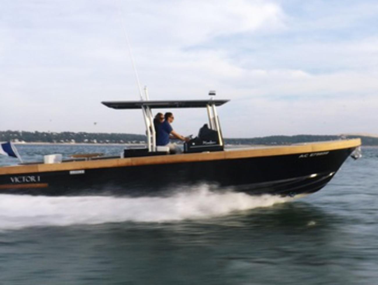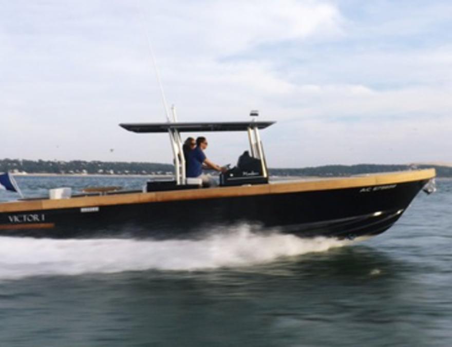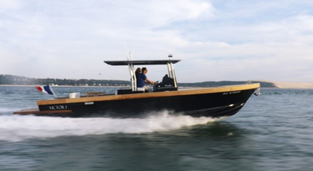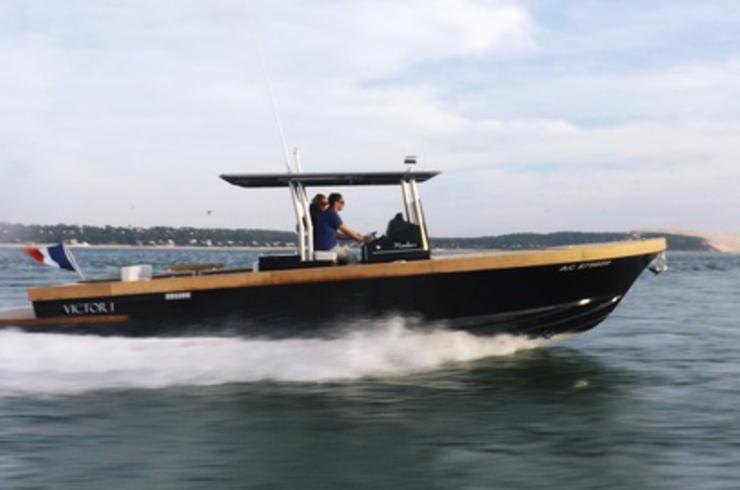 La marque est née de la rencontre entre Jean-Marc Despujols, entrepreneur passionné de plaisance, et Emmanuel Martin, propriétaire du chantier Dubourdieu, emblématique du bassin, un des derniers à continuer à réaliser des coques en bois, et qui est aussi connu pour ses superbes pinasses. L'objectif des deux hommes était de créer des bateaux à forte personnalité, des unités sophistiquées et élégantes, fabriquées sur commande dans un esprit d'exception. C'est ainsi qu'est née la gamme Mimbeau et ce 30 pieds succède au 28 lancé il y a trois ans. La silhouette n'est pas sans rappeler celle d'un fishing américain auquel il emprunte le hard top soutenu par une cage inox. Les lignes pures, géométriques et très équilibrées sont signées Vincent Duchatelet, architecte du chantier Dubourdieu. On sent cette coque tendue taillée pour la performance, on devine l'efficacité de l'avant tulipé. Au niveau des matières et de l'aménagement, le Mimbeau 30 s'inspire aussi de l'esprit du canot à moteur. L'élégance, le style et le bois n'y sont pas étrangers. Les dimensions généreuses de la coque qui mesure 10 m de long sur une largeur de 3,30 m permettent d'offrir un plan de pont de rêve.