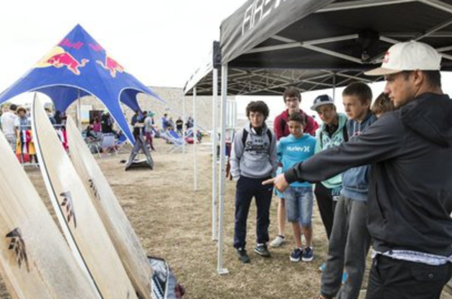 Leur rencontre avec Michel Bourez devrait longtemps rester gravée dans la mémoire des jeunes surfeurs sélectionnés pour le Red Bull Local Hero Tour. Le 29 août dernier, ils étaient 24 à débarquer au Surf Club de Royan Atlantique pour rencontrer leur idole. Au menu : préparation physique et conseils suivis d’exercices sur la plage de Pontaillac, d’une épreuve par catégorie d’âges, mêlant course à pied sur le sable et parcours à la rame sur l’eau et enfin du visionnage de quelques épisodes de « 21 days », une nouvelle série produite par Red Bull Media House mettant en scène certains des meilleurs surfeurs de la planète. Une première journée bien chargée qui a fait place dès le lendemain matin à la compétition. « Je prends tellement de plaisir à voir le sourire de ces jeunes. J’espère qu’ils persévèreront et atteindront leurs rêves pour ceux qui souhaitent passer pro. Globalement, il y a un très bon niveau mais je suis surtout bluffé par l’esprit tactique de certains malgré leur jeune âge », a commenté Michel Bourez, qui a supervisé les séries et évalué les graines de champions. Après Royan, le Red Bull Local Hero Tour a mis le cap sur Penhors, où 24 des meilleurs espoirs du surf breton se sont retrouvés autour de Michel Bourez. Tout comme à Royan la veille, le surfeur tahitien a pu prodiguer des conseils aussi bien techniques que tactiques aux jeunes surfeurs.