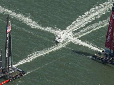Au jeu du chat et de la souris ETNZ et plus fort et reprend la tête au croisement suivant devant les gradins remplis de Marina Green. Au passage de la marque de près, les Kiwis gardent leur adversaire à distance (25 secondes). Volant parfaitement et exécutant leurs manœuvres à la perfection à plus de 40 nœuds, l'AC72 de Dean Barker clôt victorieusement cette première manche en 23´30 minutes, reléguant James Spithill à 36 secondes. Pour la première fois de la compétition, les spectateurs ont assisté à deux changements de leader dans une course d'une incroyable intensité.