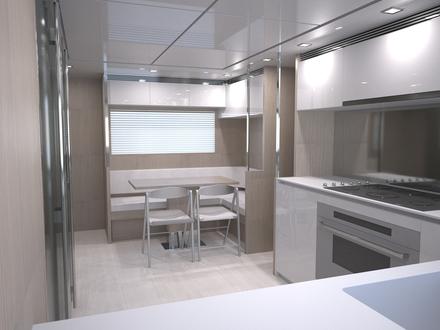 Un nouveau chapitre de l’histoire Riva « Le 122’ Mythos représente la continuité à grande échelle du Domino. Avec ce nouveau navire, non seulement c’est un nouveau chapitre de l’histoire de Riva qui commence mais c’est aussi une étape clé dans le secteur du nautisme qui est franchie », assure Mauro Micheli, fondateur de l’Officina Italiana Design. Une étape clé, car avec le Mythos, il semble que l’idée principale de Riva ait été d’expérimenter une nouvelle forme de yachting : à savoir trouver l’équilibre le plus juste, le plus parfait, entre performance extrême et luxe, puis d’avoir modelé l’essence de cette fusion en une longue flèche argentée. A l’intérieur comme à l’extérieur de ce yacht donc, rien d’ostentatoire, rien de trop. Que ce soit dans la spacieuse suite du propriétaire, les cabines pour les invités, le salon intérieur offrant une impressionnante vue panoramique, les larges bains de soleil, le sundeck avec jacuzzi entouré de sofas et d’un espace dînatoire, toutes les lignes du mobilier semblent avoir été épurées à l’extrême pour n’offrir que l’absolu nécessaire à une croisière confortable à grande vitesse.