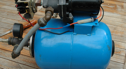 Sur tous les bateaux fabriqués depuis une quinzaine d’années, l’eau est distribuée sous pression. Pour ce faire, une pompe (groupe d’eau) se met automatiquement en route lorsque l’on ouvre un robinet. Les deux modèles de pompes que l’on trouve sur le circuit d’eau sont soit à membrane, soit à turbine. Pour assurer la distribution, la mise en service de la pompe est conditionnée par la présence d’un pressostat et d’un contacteur électrique. Le pressostat a pour rôle non seulement d’assurer la mise en service de la pompe mais aussi de surveiller la pression dans la tuyauterie.