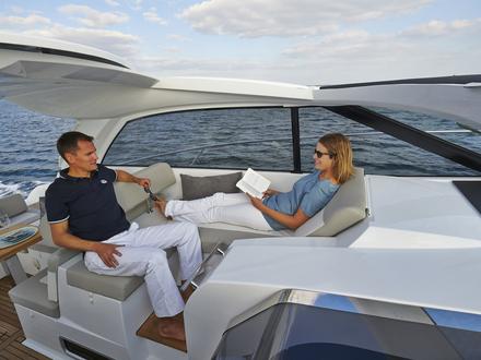 Aujourd’hui, la moitié des ventes de la gamme Leader de Jeanneau se fait dans l’hexagone. Une tendance qui devrait moins se vérifier pour le Leader 40. « Le Leader 40 devrait plus se vendre à l’étranger qu’en France. Nous tablons sur des ventes à l’étranger de l’ordre de 70%, avance Merry de la Poëze. Nous avons une grosse activité hors-bord chez Jeanneau mais nous avons décidé il y a deux ans de développer notre activité inboard, car c’est elle qui va nourrir les marchés à l’export. Nous avons pour le moment trois gammes inboard, Leader donc, NC et Velasco, qui ne compte pour l’instant qu’un seul modèle, le Velasco 43. Nous travaillons sur des unités de 30 et 45 pieds ». Sur le segment des bateaux de 40 pieds, les principaux concurrents de Jeanneau sont Princess, Fairline, Sessa Marine et Bavaria.