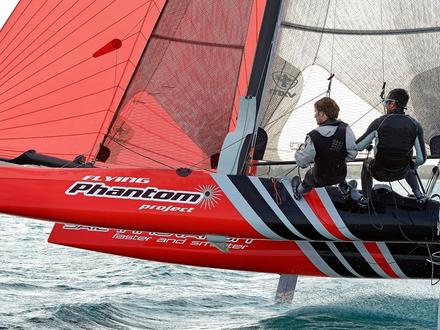 Phantom International a dévoilé au Nautic de Paris le Flying Phantom One Design, un catamaran de 18 pieds volant sur ses foils, fruit de trois années intensives de recherche et développement.