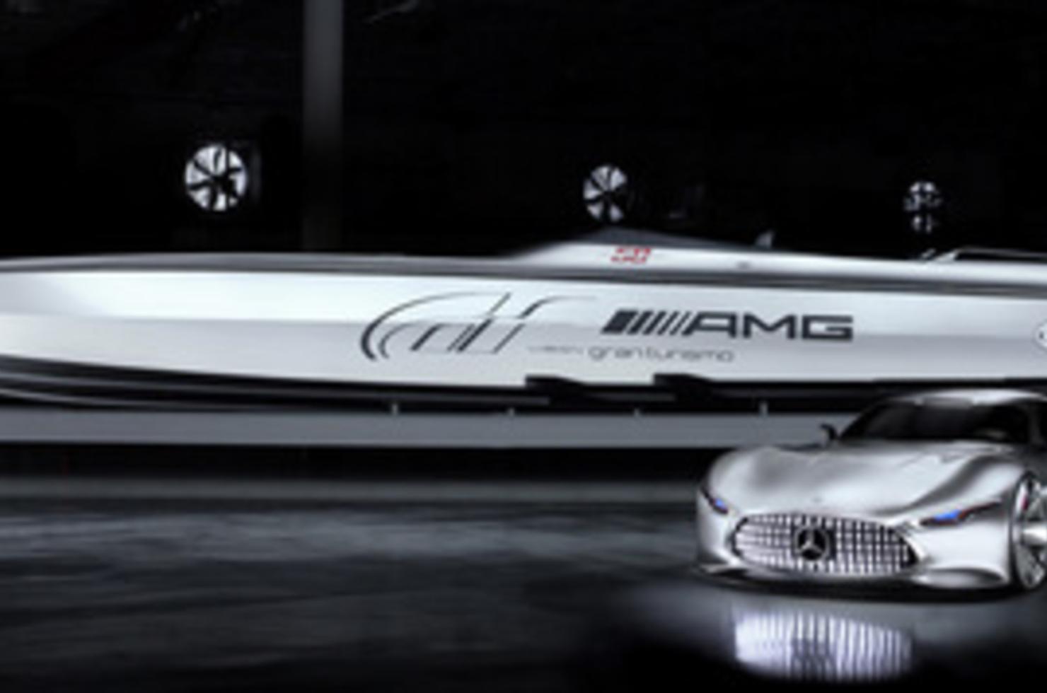 Contrairement au prototype Mercedes AMG Vision Gran Turismo, qui ne peut être piloté pour l’instant que dans le monde virtuel, même si la marque a annoncé sa création en nombre limité pour bientôt, cet offshore Cigarette Racing 50’ Vision GT Concept existe bel et bien. Un modèle unique vendu au prix bien réel de 1.095.000 €.