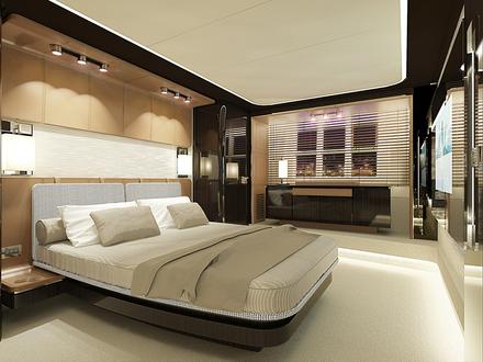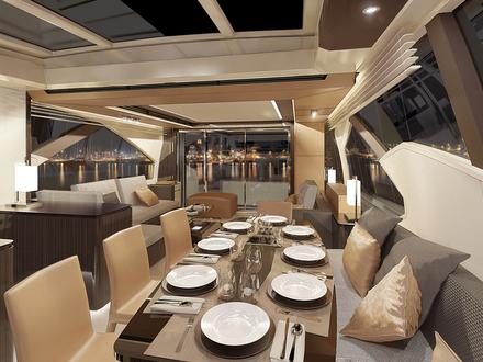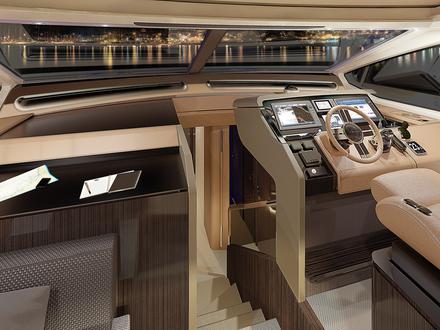 Le dernier né de la gamme S répond à l’impératif de l’ADN italien, “beauté et qualités sportives”, selon la formule des chantiers Azimut. C’est donc sans surprise qu’on retrouve un designer italien au dessin de la nouvelle silhouette ciselée, Stefano Righini, et son compatriote Carlo Galeazzi aux manettes de la décoration intérieure. Le cuir et le bois zebrano – un assemblage d’essences variées, de l’amarante à l’ébène en passant par le frêne ou l’acajou - permettent de jouer sur les nuances pour un intérieur personnalisé. Un intérieur baigné de lumière naturelle grâce aux très larges baies vitrées. De belles performantes techniques. La luminosité a également été travaillée pour le confort du poste de pilotage. L’Azimut 77S accueille jusqu’à trois membres d’équipage, logés dans deux cabines sur le pont inférieur à l’arrière du navire. Pour le dessin de la suite propriétaire et de la cabine VIP, les designers ont tout fait pour maximiser l’espace.