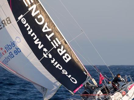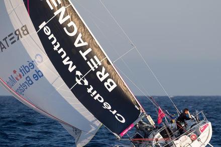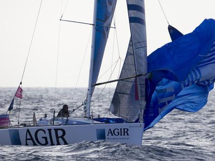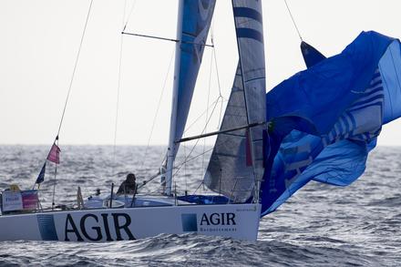Une petite trempette plus tard pour regarder si des algues n’étaient pas collées sur son safran tribord, bien réveillé donc, Yann Éliès pouvait continuer son périple sur le même bord lancinant adopté depuis le Fastnet. Rassuré de voir celui qui l'inquiétait tant réapparaître sur son écran AIS (outil de localisation, NDLR). Un Alexis Loison (Groupe FIVA) se disant un peu fatigué après avoir mis du charbon la nuit précédente. Le vainqueur de la première étape à Plymouth, n’était pas mécontent malgré tout de retrouver la tête de flotte : « J’ai dû passer 17 ou 18e au Fastnet et je me retrouve maintenant dans le groupe des premiers. J’ai sous mon vent Cercle Vert et Un maillot pour la Vie. A mon vent, Agir Recouvrement et le petit nouveau qui fait une superbe régate, Sébastien Simon du Bretagne Crédit Mutuel Performance. C’est une belle opération pour moi. Maintenant, avec ce long bord de près bâbord, on va avoir une jambe plus courte que l’autre à l’arrivée. »