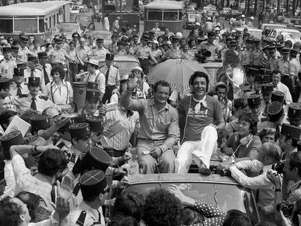 Eric Tabarly, c’est d’abord une détermination à toute épreuve. Dès son adolescence, dans le jardin de ses parents à Saint-Pierre-Quiberon, Eric Tabarly se préparait à affronter les océans, en commençant par dompter ses heures de sommeil. Une discipline indispensable pour un marin en solitaire. Victor Tonnerre, voilier et ami d’Eric Tabarly raconte ainsi que le jeune homme dormait pendant deux heures puis sortait de sa chambre pour un effort physique intense – il hachait un pin tombé dans le jardin – avant de se recoucher, puis de se réveiller deux heures plus tard pour reproduire l’exercice. « C’était pour lui le seul moyen de faire du sport, de dessiner sa musculature et d’enclencher un rythme de sommeil adapté à la course, rappelle Victor Tonnerre. Il faisait aussi le tour de Saint-Pierre-Quiberon en courant. Il rentrait, se douchait, mettait son réveil et dormait deux heures d’un sommeil profond. Puis il remettait ça. » Un entraînement de champion, avant l’ouverture des centres de formation modernes comme celui de Port-La-Forêt, le Clairefontaine de la voile. Un entraînement qui lui permit également de remporter sa première grande victoire, celle de la Transat anglaise de 1964. Pour franchir la ligne d’arrivée en vainqueur, il y a cinquante ans jour pour jour, Eric Tabarly avait parcouru la moitié de l’Atlantique sans pilote automatique, après une panne mécanique. Cette victoire lui valut l’admiration des marins comme du grand public. Le Général de Gaulle le nomma même Chevalier de la légion d’honneur. Douze ans plus tard, lors de sa seconde victoire sur la Transat anglaise, son succès fut tel qu’il descendit les Champs-Élysées sous les acclamations de la foule. Pour cette traversée de l'Atlantique, il avait dompté seul Pen Duick VI, un bateau conçu pour être dirigé par une dizaine d’hommes, et il avait de nouveau surpris sur la ligne d’arrivée, en se présentant en premier alors que les organisateurs le croyaient disparu.