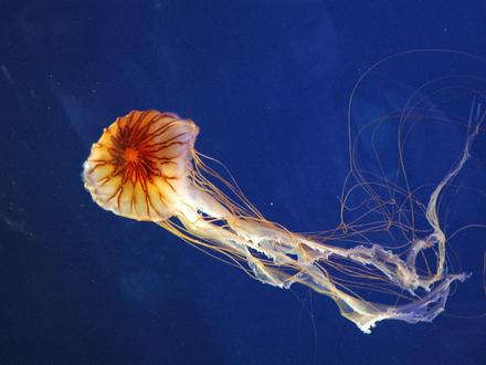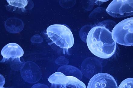 Très peu à craindre de la douce Aurélie, une méduse commune que l’on rencontre à proximité de la surface, dans toutes les mers du globe. Sa piqûre est diversement ressentie mais le plus souvent indolore. Elle est identifiable à ses quatre organes sexuels en forme de fer à cheval (de couleur blanche ou jaune chez les mâles, rose ou violacée chez les femelles). Son ombrelle, qui peut mesurer jusqu’à 40 cm de diamètre, est bordée de centaines de fins tentacules (jusqu’à 1 200). Les aquariums publics l’adorent et elles peuvent même être adoptées par des particuliers.