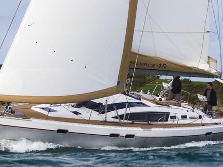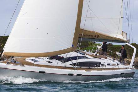 Successeur de l’Allures 44, le 45 est à la fois un bateau marin, confortable aussi bien en navigation qu’au mouillage et élégant. Innovant, le bateau est également performant grâce à sa carène large et puissante, sa dérive et ses safrans profilés ainsi qu’à son plan de voilure moderne et puissant. Dériveur intégral, coque aluminium en forme, grande capacité d’eau et de gasoil, soute à voile, panneaux solaires intégrés, local technique, cloison étanche, coffres de jupe, etc., l’Allures 45 est un voilier conçu pour les navigations hauturières et l’autonomie à bord, mais s’adapte également parfaitement à une croisière en Méditerranée. « C’est un bateau de voyage en aluminium très sécurisant qui est parfait pour la Méditerranée sachant qu’il est possible de relever la dérive, ce qui permet de passer de 3 mètres à 1 mètre de tirant d’eau et donc d’aller dans les petits ports ou de s’abriter dans les calanques. Ces mouillages ne sont pas accessibles aux quillards à grand tirant d’eau qui ont moins la possibilité de s’abriter de la houle, du vent et du ressac », explique Olivier Vantrepol, responsable commercial d’Allures Yachting. Facile à manœuvrer par un couple, l’Allures 45 se prête bien à une navigation en famille. « La plupart de nos clients naviguent en couple ou avec de jeunes enfants. On peut virer facilement en solitaire et on a accès à toutes les commandes du cockpit. Il est également possible de le configurer à la carte, de mettre des panneaux solaires ou des éoliennes. Certains font installer un compresseur pour la plongée. Nous proposons ces options de personnalisation qui font la différence avec les bateaux de grande série qui offrent moins de flexibilité », poursuit-il.