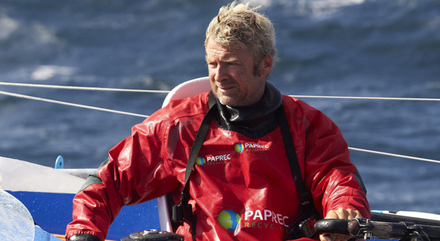 • La veste racing Très grand col polaire pour cette veste courte, idéale pour la régate. Conçue pour Gwénolé Gahinet qui recherchait une veste épurée. Coupe légèrement ajustée. Etanchéité réelle des poignets grâce aux manchons néoprène réglables intérieur et le serrage agrippant sur l’extérieur de la manche. Capuche fluo jaune avec bande réfléchissante. Bandes réfléchissantes sur les épaules et patch sur la patte. Maxi glissière 2 curseurs. 2 poches frontales étanches. Bas de vêtement forme liquette pour une meilleure protection. Prix 360 € • Le top panama Protection idéale pour les régates en solo ou équipage. Col et 2 manchons en polyuréthane. Large bande néoprène réglable avec soufflet de tissu à la taille pour une étanchéité maximale. Poche ventrale avec rabat. Une ambiance Match Race dans cette vareuse légère, avec soufflet et zip à l'épaule pour un meilleur confort dans les manœuvres. • Le pantalon transat Cette version du pantalon Transat a été plébiscitée par plusieurs coureurs. Ils apprécient le renfort genoux qui descend jusqu’au bas de la jambe, le harnais à la ceinture, les deux poches poitrine doublées polaire avec rabat, les larges renforts fessiers, la poche sur la cuisse, la patte d'attache pour étui couteau ou outil multi-usages et le réglage du dos.
