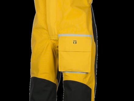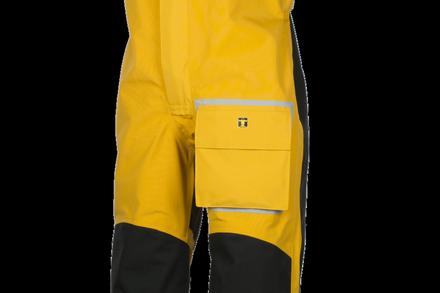 Nous retrouvons sur cette salopette la même fabrication que pour le Smock. Les points particuliers sont des renforts amovibles au niveau des genoux. Pour une meilleure protection, la coupe est taille haute. Pour le confort et la facilité, on trouve une solide fermeture éclair double sens sur soufflet étanche, les aisselles élastiques, les genoux et fessier articulés et pour un enfilage rapide, elle est non doublée et munie de larges bretelles ajustables par Velcro. Prix 639 €