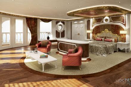 Pour quitter ce palace flottant qui peut atteindre une vitesse de croisière de 15 nœuds, on peut se déplacer soit en hélicoptère (une plateforme à l’arrière du pont sert d’héliport), en sous-marin (livré avec le yacht) ou en jet-ski selon les envies du moment. Ce concept est le tout premier dessin du cabinet Yacht Island Design, qui a pour vocation la construction de plateformes flottantes innovantes autour d’un thème spécifique, en se libérant totalement des contraintes imposées par les codes de fabrication dans l’industrie nautique.
