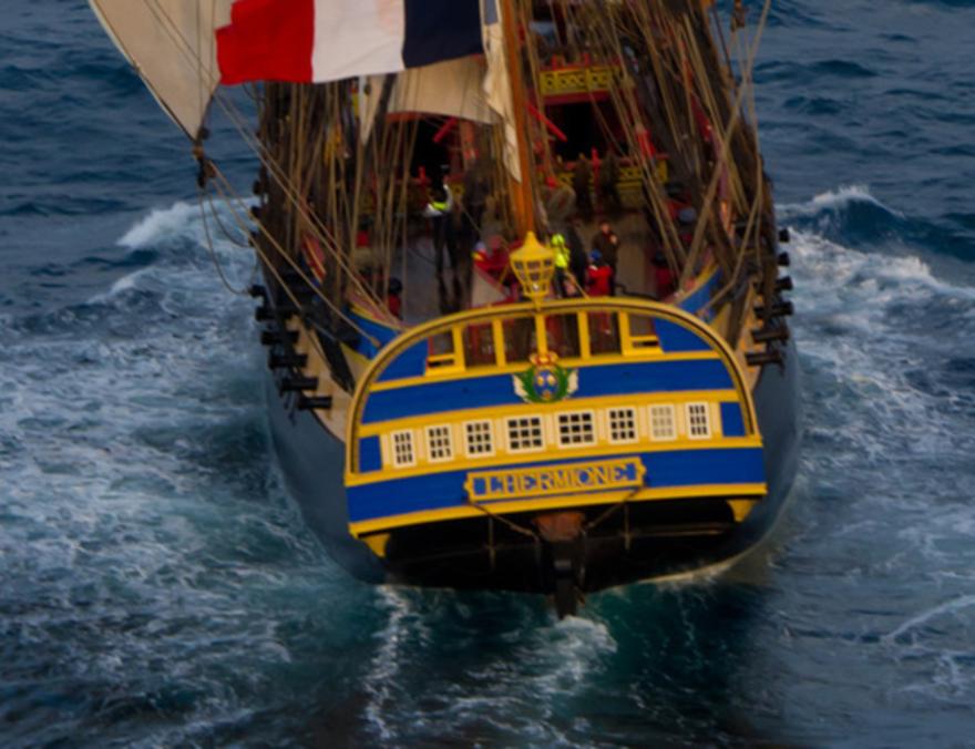 Le Grand départ de L’Hermione au large de Fouras-Les-Bains résonne encore dans les mémoires des très nombreux spectateurs comme un moment de grande émotion. Après une navigation menée sans encombre, dans des vents légers, le commandant Yann Cariou et son équipage s’apprêtent donc à retrouver la terre ferme, à l’occasion de leur première escale aux Canaries. Un rendez-vous à la charge symbolique très forte et le seul sur leur route vers les Amériques. Une escale qui sera un vrai moment d'amitié franco-espagnole, un symbole du soutien conjoint de l'Espagne et de la France au 18eme siècle à la cause de l'indépendance américaine et un salut à Christophe Colomb et aux grands découvreurs qui ont fait escale autrefois aux Îles Canaries.