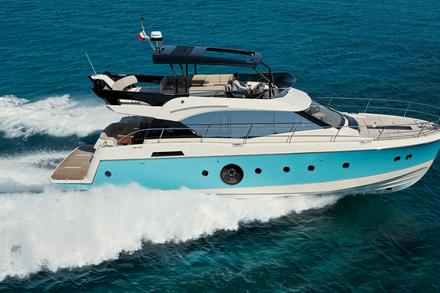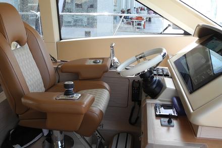 Un bateau bien pensé pour ses aménagements. Un design original, on peut ne pas aimer, par exemple, les hublots ronds ou encore la couleur de coque turquoise, mais qui devrait séduire une clientèle méditerranéenne, en particulier, le flybridge de grande dimensions. L’ensemble des aménagements est bien pensé et réalisé dans des matériaux nobles tels que le teck et le noyer Pores Creux. L’un des points négatifs est la cuisine sans hublots et certains équipements utiles proposés en option. Les options, il est vrai qu’elles permettent de personnaliser son bateau, mais elles ont un coût non négligeable sur le prix final. Nous pouvons citer la passerelle hydraulique à 33.280 €, le taud de cockpit rétractable à 5 000 €, le siège de pilotage Besenzoni à 12 800 € ou encore l’air conditionné à 41 000 € En finition exclusive bon nombre d’options sont incluses (support d’annexe intégrée à la plateforme, plateforme hydraulique, propulseur d’étrave double poste, caméra arrière, etc. …), mais le surcoût est de 122 000 €. A titre indicatif, le bateau que nous avons testé avec toutes options coûtait 1 167 000 € HT.