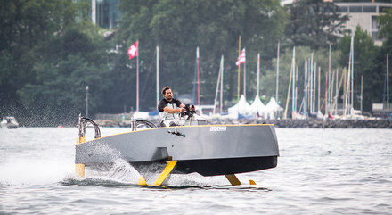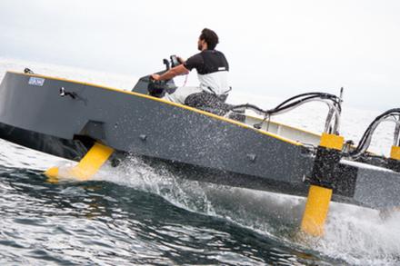 « L’Hydroptère, détenteur absolu du record de vitesse à la voile, est une Formule 1 des mers, qui a demandé beaucoup de recherches et d’expérimentations. J’ai eu envie d’essayer de faire bénéficier Monsieur Tout-le-monde de ce que l’on avait pu mettre en œuvre sur ce projet, explique Jean-Mathieu Bourgeon, à la tête de la société morbihannaise JMKoncept. Je suis un adepte des foils de la première heure. Grâce à mon expérience sur l’Hydroptère, je connais tous les avantages des foils et les difficultés inhérentes. J’ai voulu mettre tout cela au service de la plaisance en imaginant un bateau à moteur performant, puissant, confortable et respectueux de l’environnement, qui permette de faire des économies de carburant ». Ainsi est né le concept du HY-X, un bateau à moteur hybride à l’aise dans toutes les conditions. « Les foils, qui permettent notamment de s’affranchir de la vitesse des vagues et de gagner en performance, peuvent être handicapants dans certaines situations, comme lors des manœuvres dans le port, par exemple, rappelle Jean-Mathieu Bourgeon. J’ai essayé de trouver une solution hybride qui permette d’escamoter les foils et de ne les sortir que lorsque les conditions s’y prêtent. La difficulté était que l’on ne pouvait pas avoir de liaison rigide entre le moteur et l’hélice. Il a fallu imaginer une solution de transmission hydrostatique, sans arbre d’hélice directement connecté ».