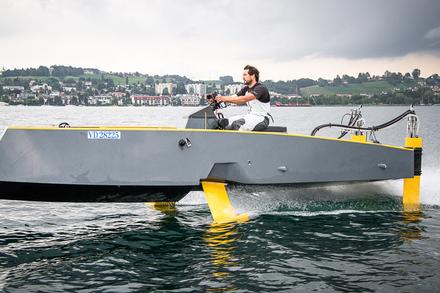 Avant de se lancer dans la production du HY-41, Hydros, qui a pu compter sur l’expertise de Jean-Mathieu Bourgeon via sa structure JM Koncept, mais également de VPLP ou HDS, a décidé de valider le concept à l’échelle 1/2, en construisant entre janvier et mai 2014 une maquette expérimentale, le HY-X, au chantier Technologie Marine de Charlie Capelle. « Le HY-X permet de valider tout le concept et de vérifier que la pratique est bien conforme à la théorie, avant de s’attaquer à la construction du bateau dans sa version définitive », poursuit Jean-Mathieu Bourgeon. Mis à l’eau à La Trinité-sur-Mer en juin 2014, le HY-X a tiré ses premiers bords dans le Morbihan avant d’être testé sur plusieurs plans d’eau, à Bordeaux, à Cannes, à Monaco et sur le lac Léman. Si pour l’heure, le prototype, qui décolle aux alentours des 13 nœuds, affiche une vitesse de pointe de 30 nœuds avec foils contre 20 nœuds sans foils, le HY41 devrait pouvoir monter jusqu’à 45 nœuds. « On a pu valider le gain apporté par les foils en matière de vitesse, mais également de confort et d’économie de carburant (de l’ordre de 30 %, N.D.L.R.), qui sont des enjeux très importants. La prise de conscience écologique est forte dans le milieu de la plaisance ».