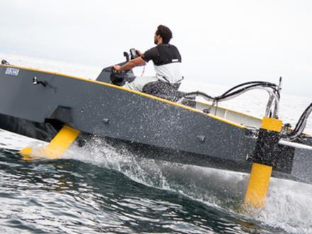 « L’Hydroptère, détenteur absolu du record de vitesse à la voile, est une Formule 1 des mers, qui a demandé beaucoup de recherches et d’expérimentations. J’ai eu envie d’essayer de faire bénéficier Monsieur Tout-le-monde de ce que l’on avait pu mettre en œuvre sur ce projet, explique Jean-Mathieu Bourgeon, à la tête de la société morbihannaise JMKoncept. Je suis un adepte des foils de la première heure. Grâce à mon expérience sur l’Hydroptère, je connais tous les avantages des foils et les difficultés inhérentes. J’ai voulu mettre tout cela au service de la plaisance en imaginant un bateau à moteur performant, puissant, confortable et respectueux de l’environnement, qui permette de faire des économies de carburant ». Ainsi est né le concept du HY-X, un bateau à moteur hybride à l’aise dans toutes les conditions. « Les foils, qui permettent notamment de s’affranchir de la vitesse des vagues et de gagner en performance, peuvent être handicapants dans certaines situations, comme lors des manœuvres dans le port, par exemple, rappelle Jean-Mathieu Bourgeon. J’ai essayé de trouver une solution hybride qui permette d’escamoter les foils et de ne les sortir que lorsque les conditions s’y prêtent. La difficulté était que l’on ne pouvait pas avoir de liaison rigide entre le moteur et l’hélice. Il a fallu imaginer une solution de transmission hydrostatique, sans arbre d’hélice directement connecté ».