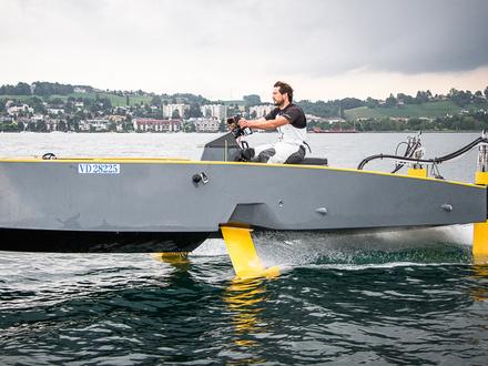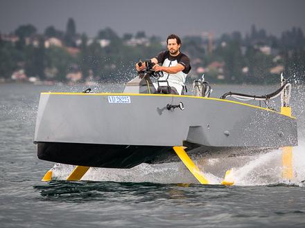 Avant de se lancer dans la production du HY-41, Hydros, qui a pu compter sur l’expertise de Jean-Mathieu Bourgeon via sa structure JM Koncept, mais également de VPLP ou HDS, a décidé de valider le concept à l’échelle 1/2, en construisant entre janvier et mai 2014 une maquette expérimentale, le HY-X, au chantier Technologie Marine de Charlie Capelle. « Le HY-X permet de valider tout le concept et de vérifier que la pratique est bien conforme à la théorie, avant de s’attaquer à la construction du bateau dans sa version définitive », poursuit Jean-Mathieu Bourgeon. Mis à l’eau à La Trinité-sur-Mer en juin 2014, le HY-X a tiré ses premiers bords dans le Morbihan avant d’être testé sur plusieurs plans d’eau, à Bordeaux, à Cannes, à Monaco et sur le lac Léman. Si pour l’heure, le prototype, qui décolle aux alentours des 13 nœuds, affiche une vitesse de pointe de 30 nœuds avec foils contre 20 nœuds sans foils, le HY41 devrait pouvoir monter jusqu’à 45 nœuds. « On a pu valider le gain apporté par les foils en matière de vitesse, mais également de confort et d’économie de carburant (de l’ordre de 30 %, N.D.L.R.), qui sont des enjeux très importants. La prise de conscience écologique est forte dans le milieu de la plaisance ».