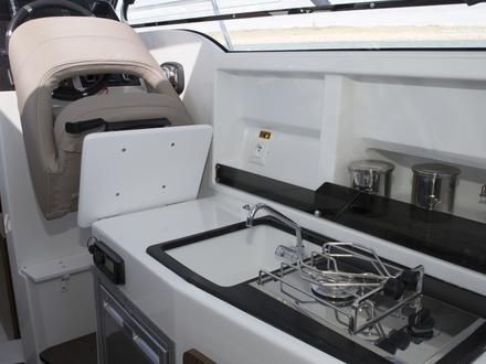Nouvelle carène et motorisation hors-bord On trouve une carène avec un V profond et une étrave tulipée sur les deux modèles. Cette conception leur permet de bien passer les vagues tout en gardant une bonne stabilité dans la mer formée. Pour la motorisation, le moteur in-bord, sans doute trop coûteux, cède la place à des hors-bords. Les puissances maximales sont de 175 CV pour la 7 et 200 CV pour la 8. En option, pour faciliter les manœuvres, un propulseur d’étrave est proposé. Un habitacle modernisé On accède au carré timonerie par une double porte coulissante et, là, première surprise la luminosité. Finis les intérieurs sombres et pas toujours fonctionnels des modèles des années 80, les boiseries sont en noyer. Place à la lumière sur 360° grâce à un ensemble de baies vitrées, un large pare-brise et un panneau de pont coulissant. Les points forts de ce carré sont la banquette à gauche du poste du pilotage qui, en basculant, offre deux possibilités : soit face à la route en navigation soit vers la table. Cette dernière avec sa banquette en U peut accueillir 4 personnes et est transformable en couchette double. Face à ce carré, après avoir incliné le siège de pilotage, on trouve une cuisine avec évier, réchaud (option) et réfrigérateur (option). A l’avant du carré, se situe une cabine avec une couchette double pour deux adultes. Cette cabine est lumineuse grâce à son panneau de pont qui permet également de la ventiler. La salle d’eau avec toilettes fermée par une porte, se trouve sous le poste de commande. L’Antares 8 bénéficie d’un hublot ouvrant, pas la 7. Dommage pour l’aération ! Cockpit et plan de pont digne d’un grand Le cockpit n’est pas seulement dédié à la pêche comme sur les modèles précédents, il est aussi modulaire et peut prendre plusieurs configurations. Il est transformable en large bain de soleil et, pour accéder au moteur, la banquette arrière coulisse. L’accès à la mer se fait côté tribord par une plateforme de bain avec échelle escamotable. En navigation, pour la sécurité, il y a une porte. Les inconditionnels de la pêche peuvent dégager le cockpit en ne gardant que la banquette arrière. Le pont avant peut recevoir des coussins (bains de soleil), pour faciliter le mouillage il y a un guindeau électrique et pour les manœuvres, un propulseur. Tous ces équipements sont proposés en options. Faire le bon choix Avant parler de prix, bien que les deux modèles présentent la même configuration intérieure et extérieure, le volume intérieur est plus important sur la 8 que sur la 7. Il en est de même pour le passage dans la mer formée. Le prix est fonction des options. Il est pour une coque nue sans moteur, respectivement de 29.040 euros pour la 7 et 34.440 euros pour la 8. Les bonnes options Sur l’Antares 7, le pack confort (table de cockpit, selleries extérieures, système d’eau sur évier, lavabos, douchette de cockpit, rideaux intérieurs et vitre latérale bâbord coulissante) vous coûtera 3972 euros, plus 1 248 euros pour le réfrigérateur. Sur l’Antares 8, le pack confort avec en plus un circuit 230 volts avec chargeur, le réfrigérateur et un deuxième essuie-glace, 6 192 euros. Le guindeau électrique est proposé respectivement 1716 euros et 1 908 euros. Quant au propulseur, comptez 2 676 euros. Reste le moteur. Le prix que nous vous donnons est indicatif, il dépend du montage, du type de commande (électrique ou mécanique), mais bien souvent le concessionnaire propose un pack avec moteur. Sur le modèle 7, comptez 11 000 euros pour un 175 CV et sur le modèle 8, 13 000 euros pour un 200 CV Suzuki.