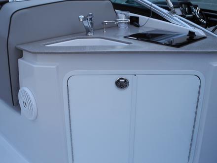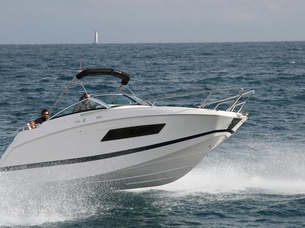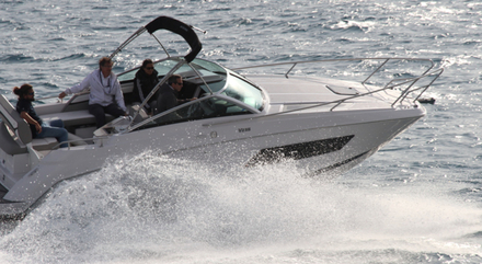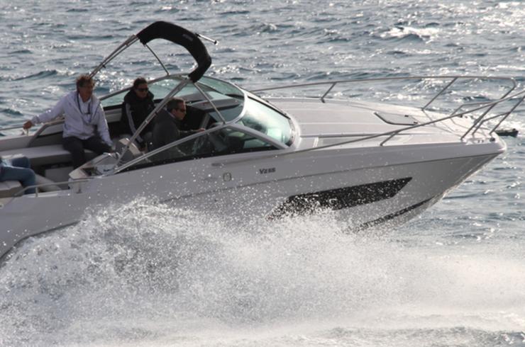 Un bateau bien conçu pour des vacances en famille Dans une unité de 7,70 m, le chantier a réussi à intégrer l’essentiel pour passer des vacances en famille. La cabine est suffisamment grande pour loger 4 personnes et le cockpit est un espace de vie adapté, en particulier, pour les navigations estivales au soleil. A l’arrière du siège du barreur, se trouve une cuisine avec évier (eau sous pression) et plaque chauffante. Cette unité étant destinée à une vie extérieure dédiée à la détente, le maximum a été fait pour que le cockpit soit le plus accueillant possible. Outre la cuisine, il y a une banquette à bâbord et une transversale à l’arrière. Cette dernière peut pivoter pour se transformer en un coin repas ou en bain de soleil. L’accès à la plage avant, principalement destinée aux bains de soleil, se fait par un panneau ouvrant au centre du pare-brise. Une cabine petite mais fonctionnelle Lorsque l’on pénètre dans la cabine, le volume disponible laisse à penser que nous sommes sur une unité de plus de 7,70 m. Tout d’abord, la hauteur sous barreau de 1,90 m, ensuite, un coin cuisine avec évier et aussi l’accès par une porte à un cabinet de toilette avec évier et WC. A l’arrière, sous le cockpit, se trouve une couchette double. Quant à l’avant, il peut prendre deux configurations : coin repas avec table ou couchette. Les principaux rangements se situent à bâbord côté cuisine avec placards et bibliothèque et sous la pointe avant. Le comportement en mer Le siège pilote est suffisamment haut pour avoir une vue à l’avant du bateau et le volant peut prendre plusieurs positions pour permettre une position agréable et adaptée pour la conduite. Toute l’instrumentation et les commandes sont disposées sur un tableau de bord fonctionnel et design. Lors de nos essais, nous avons eu une mer formée relativement courte. La carène passe bien y compris à vitesse élevée (30 nœuds) et on prend plaisir à la barre. Quelques virages serrés nous ont permis de constater qu’à vive allure, il a un comportement sportif avec une gite importante et un glissement sur l’eau qui reste acceptable. Mais, ce sont là des conditions extrêmes, en croisière familiale, on recherche davantage le confort avec une vitesse moins importante. Sur le modèle que nous avons testé, le moteur était un Volvo V6 de 280 CV, mais il est également proposé avec un Mercruiser de 250 CV. Une puissance largement suffisante pour naviguer en toute sécurité. Caractéristiques Longueur : 7,67 m Largeur : 2,55 m Tirant d’eau : 56/91 cm Poids : 2800 kg Capacité d’eau : 79 litres Motorisation max : 200 CV Prix à partir de 95 000 euros