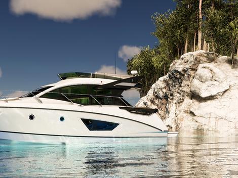 Dans la version Hardtop, il combine un pare-soleil rétractable, des vitrages latéraux abaissant ainsi qu’un toit ouvrant. Ces équipements procurent protection et ventilation aussi bien en navigation qu’au mouillage. La version Sportfly offre un second poste de pilotage au fly. Il y a, à côté du siège pilote, une banquette double transformable en bain de soleil ainsi qu’un carré pouvant accueillir cinq personnes. A l’arrière du bateau, on trouve un tender-garage et une vaste plateforme de bain pouvant, en option, être munie d’un système d’abaissement hydraulique rendant celle-ci immergeable signe d’une unité dédiée aux plaisirs nautiques variés.