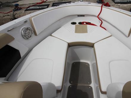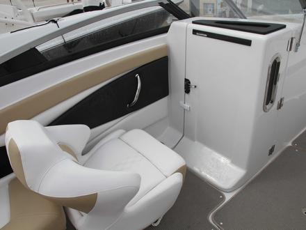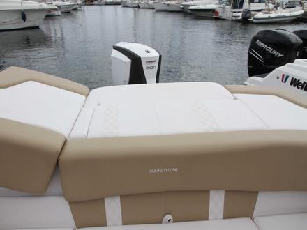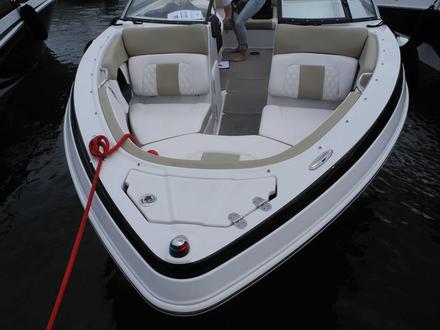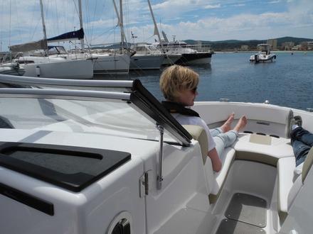 On aime ou on n’aime pas le côté rétro, mais la couleur, le tableau de bord et la ligne sont des points positifs. Ce bateau est avant tout conçu pour les sorties à la journée en famille et ce, en toute sécurité. Sa conduite souple, sa rapidité à monter en vitesse avec un déjaugeage presque immédiat, sont des atouts supplémentaires pour ceux qui pratiquent les sports comme le ski nautique. De plus, ce déjaugeage permet au pilote d’avoir rapidement une bonne visibilité. Les aménagements sont bien disposés (coffres, bain de soleil, cockpit) et les banquettes très confortables. On peut regretter que l’accès à la petite cabine soit assez restreint et certains coffres peu pratiques.