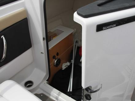 Le GT 240 est le modèle le plus grand de cette gamme. On retrouve la touche du chantier américain avec son pare-brise enveloppant et une carène en V SSV (Super Stable Vee). Tout en ayant un côté rétro, il reste élégant sur l’eau et ne passe pas inaperçu avec sa couleur noire réhaussée par le blanc du moteur hors-bord Evinrude. Les aménagements sobres restent de bon goût avec le capitonnage complet aussi bien sur les dossiers que sur le pavois. Le pilote a à portée de main toutes les commandes ainsi que les contrôles. Ces derniers sont regroupés sur un tableau de bord chic et retro avec des cadrans ronds et des boutons inox. Le siège pilote réglable est bien proportionné tout en étant suffisamment enveloppant pour assurer un bon maintien. Les réglages du siège et du volant permettent, quelle que soit la morphologie du pilote, de trouver le bon compromis entre assise et visibilité. Pour une unité de moins de 8 m (7.42 m), l’habitabilité est bonne tout en offrant un côté sécurisant. Le cockpit profond (0.90 cm) en est un exemple, le salon qui en position normale est en U devient un espace pouvant accueillir 6 à 8 personnes sans aucun problème lorsque l’on fait pivoter les sièges (pilote et passager). Les assises sont confortables. Le bruit et les vibrations sont amortis par de la moquette que l’on retrouve aussi sur le plancher et dans les coffres. Une note de goût mais il n'est pas certain que la moquette vieillisse bien à l’humidité. Il sera donc prudent de les ranger au sec, elles sont amovibles car tenues par des pressions.