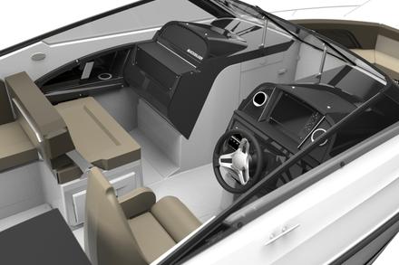 Motorisés en version hors-bord Mercury de 150 à 300 chevaux, les nouveaux Quicksilver Activ disposeront d’une direction hydraulique de série (sauf pour le 555) et d’un poste de pilotage ergonomique avec un bloc électronique (GPS/traceur) en option. Côté confort, on retrouvera à bord une finition flexiteck, un bimini intégré à installer en un tour de main, une table de cockpit pliable ou encore de nombreux coffres de rangement pour les skis ou les différents matériels. Parmi leurs atouts, les nouveaux Activ offriront un passage direct vers la proue via une ouverture centrale dans le pare-brise. De même, les amateurs de farniente apprécieront la partie avant qui dispose d’une banquette en U et peut se transformer en bain de soleil toujours en quelques secondes. Enfin, on retiendra de part et d’autre du moteur hors-bord, de mini plateformes de bain pratiques pour la baignade ou l’accostage une fois revenu au port. Les trois modèles disposent d'un cockpit autovideur et d'une kitchenette. Cependant, seuls le 605 et le 755 Activ Bowrider offrent le système de drainage qui évite que l’eau s’écoule vers le cockpit.