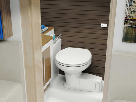 La société française SFA propose toute une gamme destinée aussi bien aux professionnels de l’industrie nautique qu’aux propriétaires de bateaux. La gamme Compacte de SFA propose des WC de hauteur réduite à installer sur un surbau, dont le modèle Maxlite. Ce dernier permet de remplacer les WC à pompe manuelle.