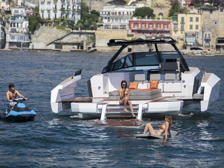 Près de 400 embarcations à moteur seront exposées au Nautic de Paris, réparties dans plusieurs catégories et programmes de navigation allant du fishing au bateau de croisière en passant par le semi-rigide, le Jet-Ski ou le day-boat. Parmi les plus étonnantes unités présentes dans le hall 4, on retiendra l’exposition, pour la première fois au Salon Nautique de Paris, de l’Evo 43 pieds Hard Top. Construit par Blu Emme Yachts (Italie) et dessiné par le Studio Rivellini, ce day-cruiser de 13 mètres au profil sportif et moderne est l'un des derniers modèles du chantier napolitain né en 2015. Il se distingue par un T-top en carbone, un pare-brise symétrique en verre trempé et surtout par son bain de soleil arrière qui, via une commande électronique, transforme cet espace en une énorme terrasse. Pour cela, les pavois du bateau s’ouvrent et offrent au mouillage une surface supplémentaire d’environ 40%. Etonnant !