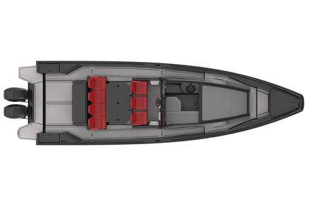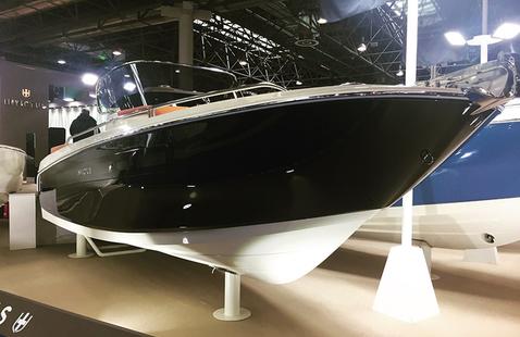 A Düsseldorf, le Brabus Shadow 800 a frappé les esprits avec d’entrée une coque au V profond recouverte par un gel-coat noir que vous pouvez retrouver sur des berlines sportives de luxe. « Nous avons utilisé un système de peinture de finition haut de gamme Alexseal, l'un des meilleurs systèmes de peinture haute brillance de l'industrie » confirme Brabus. A bord de l’open, on remarque également des mains-courantes en acier inoxydable peints en noir, des sièges extérieurs recouverts par du Sunbrella Silvertex et des sièges intérieurs en cuir fin spécial Brabus, sans oublier des finitions en Alcantara. Le tableau de bord du Shadow 800 offre un look très sportif et une finition entièrement en fibre de carbone. En prime, le bateau offre un toit ouvrant électrique Webasto de série. Imaginé pour les sorties à la journée, l’Axopar dispose de sept sièges dans le cockpit avec une grande table centrale idéale pour les repas en plein air. De base, le chantier a prévu une couchette pour deux personnes mais une option pour une petite cabine arrière avec deux places supplémentaires est proposée…