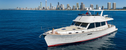 Pour optimiser sa vitesse de croisière et le confort des passagers, la coque du GB60 est ainsi entièrement construire en fibre de carbone. Les deux moteurs Volvo Penta D13 de 800 chevaux permettent d'atteindre 31 noeuds en pointe et une vitesse de croisière proche 25 noeuds. Rapide pour trawler ! Le chantier US propose aussi en option deux moteurs Volvo-Penta IPS1200 de 900 chevaux lui permettant d'atteindre 36 nœuds... Grâce à ses gros réservoirs, le bateau de croisière affiche une autonomie de plus de 2 500 milles à 10 noeuds.