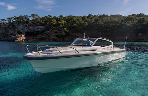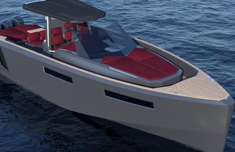 Autre scoop annoncé, l’arrivée d’une version hors-bord pour le Rhéa 35, répondant ainsi à la demande du marché pour ce type de motorisation. Le Rhéa HB voit « l’ajout d’un bracket pour rallonger la flottaison du bateau et ainsi pouvoir accueillir 2 x 250 ou 2 x 300 chevaux sur le tableau arrière » confirme le chantier de La Rochelle. L’open au style rétro-chic gagnera ainsi un grand volume et devrait être commercialisé en version de base aux alentours de 202 800 euros avec deux fois 250 chevaux Suzuki. Des packs « fishing » et « classic » seront proposés au même titre que de nombreuses options (électronique, guindeau, bimini, douchette de pont, finition teck, etc) faisant du nouveau Rhéa 35 HB, un open très élégant et luxueux.