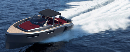 La véritable nouveauté de l'Evo CC est la présence de plusieurs moteurs hors-bord, ce qui offre au futur propriétaire le choix entre trois options, tous étant des moteurs hors-bord Mercury Verado. En terme d'aménagement et de confort à bord, on retrouve un grand cockpit arrière équipé d'un grand bain de soleil et un large T-top en carbone qui vient protéger du soleil les trois sièges centraux situés derrière le cockpit. A l'avant, un deuxième bain de soleil augmente l'espace détente à l'extérieur. A l'intérieur de l'Evo CC, on retrouve des aménagements fonctionnels et design, avec notamment une petite cuisine, qui peut se convertir en "cabine", afin que le bateau puisse accueillir jusqu'à quatre personnes. La forme et la conception de la coque assure un excellent maintien en navigation, quel que soit l'état de la mer. Plus de détails seront dévoilés dans les semaines à venir, y compris le prix ! A noter que le prix de l'Evo 43 est d'environ 540 000 euros, sans options.