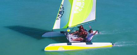 Pour utiliser le catamaran, il suffit de le "déplier", puis de s'asseoir comme dans une voiture. C'est bon, vous êtes prêt(e)s à naviguer, quinze minutes plus tard ! Il se pilote avec un joystick et toutes les commandes sont à la main. Une fois assis, le bateau bénéficie d'une grande stabilité. Il est parfaitement adapté aux enfants et aux personnes à mobilité réduite. Pour retourner sur la plage, il suffit de beacher : les coques ne s'abîmeront pas.