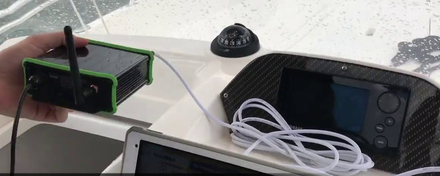 Le Nomad se présente sous la forme d’une boîte noire de petites dimensions (120x50x110 mm) équipée d’un cordon USB, d’une antenne Wi-Fi et d’un connecteur pour brancher l’antenne VHF. Cette dernière est fournie avec un câble de 4 mètres. Il possède son propre GPS avec antenne intégrée.