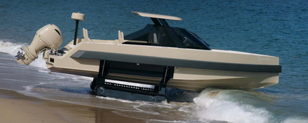 Après le succès de son premier bateau amphibie, l'Iguana 29, le chantier français installé à Caen Iguana Yachts a lancé sur le marché un nouveau modèle de day-boat monté sur chenilles : le Commuter.