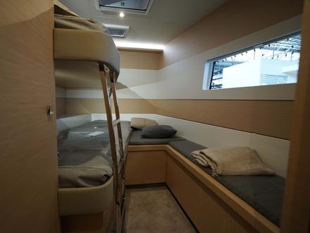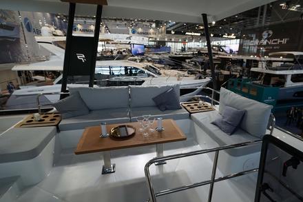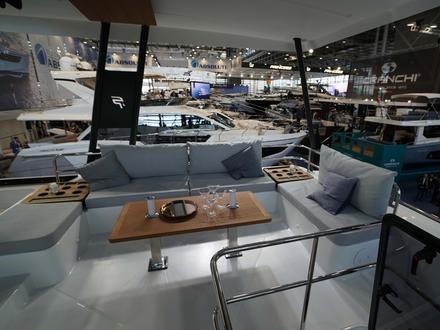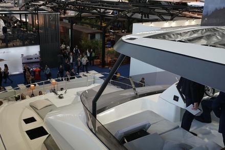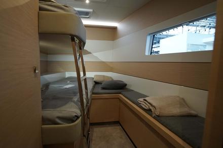 Le MY 40 se distingue au premier coup d'oeil par ses lignes dynamiques et son design racé. A l'intérieur, comme à l'extérieur, l'aménagement a été optimisé au maximum pour créer de vastes espaces de vie. A bord, on profite de la vue panoramique à 360°, d'un immense salon équipé d'une table électronique (en option) ou encore de la cuisine ouverte située entre le salon et le cockpit. Sa suite "propriétaire" offre un bon niveau de standing avec une surface totale de 11,5 mètres carrés, comparable à celle d'un monocoque de 50 pieds, et équipé d'un lit "queen size" faisant face à la mer. Ce 40 pieds reprend de son grand frère, le MY 44, la descente dans la coque propriétaire, située à l'arrière du carré.