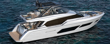 Avec une longueur de 73,4 pieds (22,30 mètres) et une largeur de 18,4 pieds (5,60 mètres), le 720 offre un grand nombre de solutions fonctionnelles et innovantes pour un navire de cette taille. Une expérience à bord digne d'une véritable villa flottante. A l'extérieur sur le pont se trouve un flybridge de 30 m2 en fibre de carbone et en matériaux composites, surmonté d'un toit rigide disponible en trois versions : fenêtre fixe, bimini intégré ou persiennes ajustables. La plateforme de baignade arrière, véritable terrasse extérieure, est équipée de chaises longues transformables et de nombreux rangements, et peut accueillir un tender de 3,95 mètres de long.