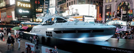 Le groupe Azimut-Benetti, à l'occasion de son 50e anniversaire, a installé en plein milieu de Times Square à New York l'Azimut S6, long de 18 mètres. Un évènement qui met fin à un mois de célébration entre évènements publics et privés, croisières sur le fleuve Hudson, débats et talk-shows... Un final en apothéose sur l'une des avenues les plus célèbres du monde.