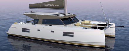 Le Nautitech 46 Open a bénéficié d'un réagencement de la part de l'architecte Marc Lombard et de Roseo Design pour atteindre une alliance optimale entre performance et confort. "Nous avons choisi de redesigner ce modèle, puisque le marché du 46 est un segment très actif avec des nouveautés régulières. Nous avons imaginé ce nouveau catamaran comme une alliance parfaite entre performance et confort" a déclaré Maya Gautier, responsable ligne de produits Nautitech.