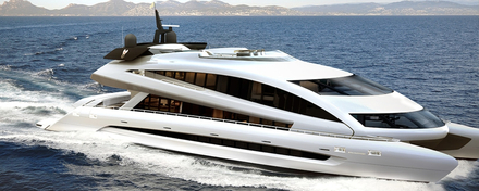 Le Royal Falcon One est un projet qui a réunit plusieurs entreprises de construction de bateaux. Il a d’abord été développé par les studios de design de Porsche à Singapour puis l’entreprise allemande s’est associée avec les architectes navals Incat Crowther.