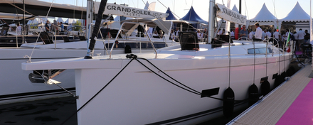 "Style" est d’ailleurs la dénomination de la version orientée croisière, avec son arceau au-dessus de la descente qui vient libérer le cockpit de l’écoute de grand-voile et recevoir élégamment un dodger textile ou même un bimini. En version "Sport", il disparaît, renvoyant l’écoute en fond de cockpit pour un meilleur contrôle de la voile, qui gagne au passage 6m² à la faveur d’un mât plus haut. L’architecte Massimo Baglio a également doté l’étrave d’une jolie delphinière recevant l’ancre, mais qui surtout, ne demande qu’à porter un grand spi asymétrique synonyme de longues glissades au portant.