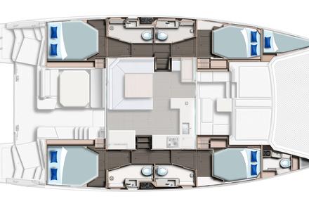 L’un des changements les plus radicaux apportés au Leopard 45 concerne l'aménagement de la cabine propriétaire. Une partie de la cloison a été retirée pour l'agrandir davantage, la banquette a été déplacée ainsi que les rangements, pour encore plus de confort et d'espace. Une reconfiguration des cabines arrière a également été réalisée : couchettes doubles avec un accès facilité par les côtés.
