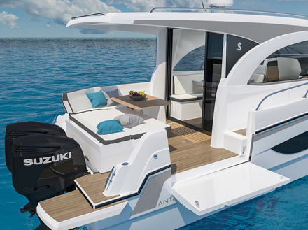 Dotée d’une double motorisation hors-bord de 2 x 300 chevaux maximum, l'Antares 11 sera lancé en première mondiale au Salon Nautic de Paris en décembre prochain.
