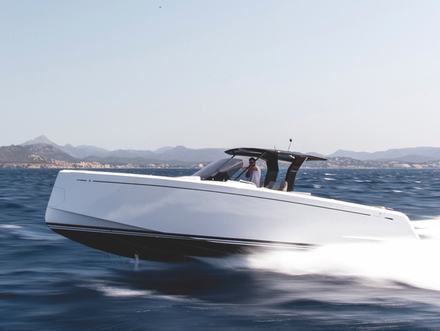 Après le 43’ et le 50’, le Pardo 38 a été présenté l'année dernière à Cannes en avant-première. Les recettes du studio Zuccheri Yacht Design sont reprises et très bien adaptées au nouveau gabarit afin de conserver l’élégance et le côté sportif qui ont fait le succès de ses prédécesseurs. L’étrave inversée, le T top en carbone (qui provient du même fournisseur que Lamborghini) participent à son air de famille très reconnaissable. Les proportions sont idéales à l’extérieur comme à l’intérieur car rien n’a été sacrifié à l’habitabilité par rapport au 43’. A bord, on retrouve table et banquette transformables en grand bain de soleil, cuisine sous le hard-top, trois fauteuils frontaux au pilotage, quatre couchages et une salle de bain pour les aménagements intérieurs. Certes, il y a un peu moins de place partout, on perd la douche séparée et il faut abaisser la table de cockpit pour laisser place au bain de soleil, mais les fonctions essentielles sont bien remplies. Le lit double de 160 x 200 cm est très confortable et les deux couchages de 80 x 180 cm sont un bel appoint.