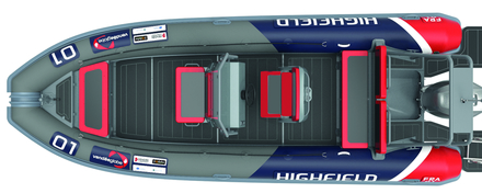 La flotte Highfield sera composée de 46 semi-rigides, entre 6,60 mètres, 7,60 mètres et 8,60 mètres. Au total, ce sont pas moins de 48 moteurs hors-bord Honda Marine qui seront installés sur le tableau arrière, en montage simple ou en twin pour des puissances de 150, 175 et 250 chevaux.