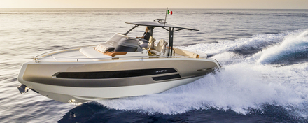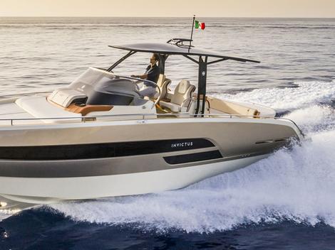 Après un lancement réussi dans le paysage motonautique européen, Invictus propose cet open de dix mètres qui vient s’intercaler, dans la gamme GT, entre le 370 et le 280, ce dernier étant à ce jour le best-seller de la marque italienne. Imaginé par le designer Christian Grande, le 320 GT conserve son étrave inversée et un style à la fois moderne et épuré. La coque en fibre de verre accueille un superbe hard-top en fibre carbone particulièrement efficace pour les journées ensoleillées. Une option qui s’ajoute aux possibilités de personnalisation commercialisées par le chantier italien comme la couleur de coque (vanille, bois foncé, gris métal, blanc, etc.), le pont en teck ou les pare-battages en cuir avec logo Invictus.
