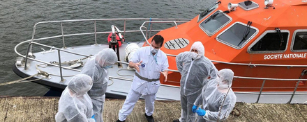 Sur la côte Atlantique, à La Rochelle, les bénévoles de la station ont assisté les services municipaux Dimanche 22 mars, un équipage réduit de quatre sauveteurs de l'Île de Groix a transporté avec leur vedette de sauvetage un patient suspecté d'être infecté par le Coronavirus. L'intervention s'est bien déroulée avec le patron infirmier, deux canotières PSE2 et un mécanicien PSC1, tous équipés de combinaisons, masques, gants et charlottes. À l'arrivée au port, le médecin référent SNSM du Morbihan, qui travaille également pour le SAMU, est venu les accueillir. Au retour à Groix, la vedette a été entièrement désinfectée en respect des consignes opérationnelles. Enfin, le 25 mars dernier, les bénévoles de la station de Quiberon ont réalisé une évacuation sanitaire pour une femme victime d'insuffisance respiratoire, en collaboration avec les pompiers et le SAMU. Le lendemain, ils assuraient le transport d'un homme de Belle-Ile à Port-Maria. A Carro, Gruissan, Saintes-Maries-de-la-Mer, au Grau du Roi ou encore au Tréport, les sauveteurs assurent des livraisons de courses et de médicaments aux personnes les plus fragiles. Partout en France, les bénévoles de la SNSM sont sur le pont.