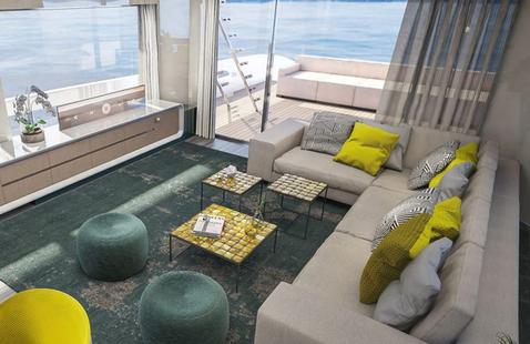Double Happiness (double bonheur) tire son nom d'un ornement traditionnel chinois, symbolisant le bonheur du mariage. Ce nouveau Sunreef 80, entièrement personnalisé selon les souhaits de son propriétaire, possède un immense salon proposant un niveau de confort inégalé.